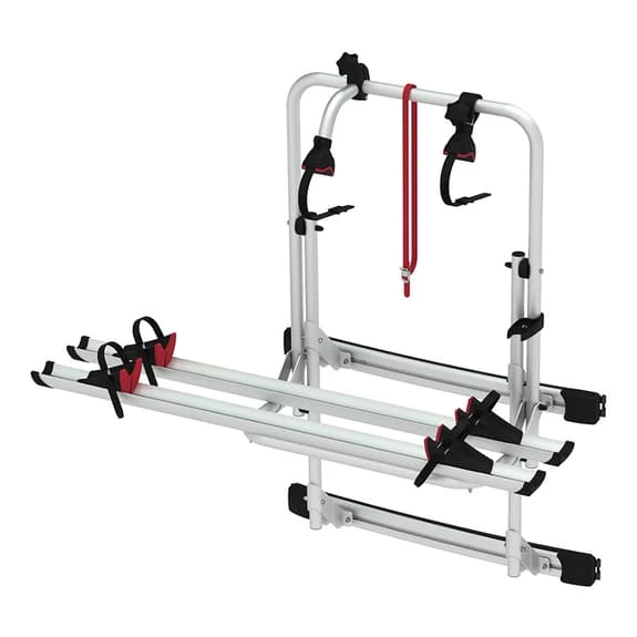 Porte-vélos avec une structure légère et solide, parfait pour profiter des portes arrière de la fourgonnette.